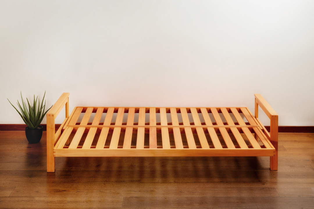 Il Futon appoggiato sulla rete a doghe rigide si adatta facilmente alla sorprendente velocità di apertura e chiusura.