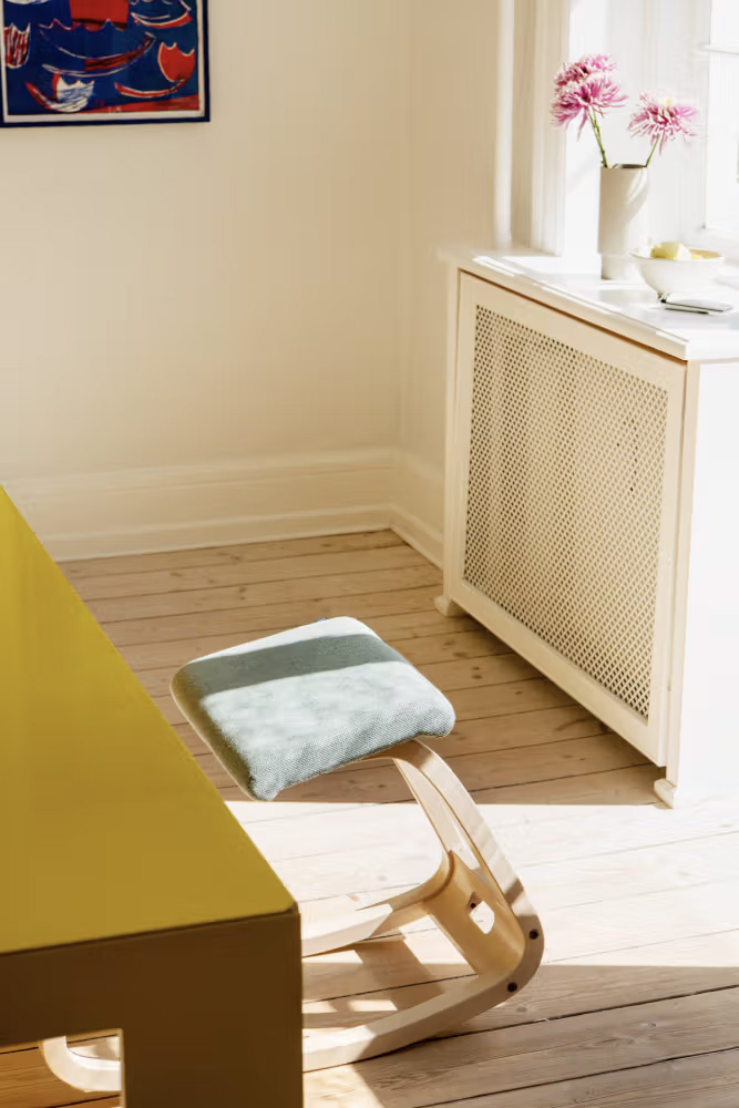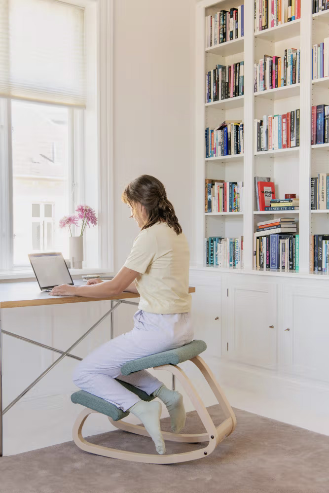 Progettata da Peter Opsvik nel 1979, Variable balans è la sedia con appoggio delle ginocchia originale.